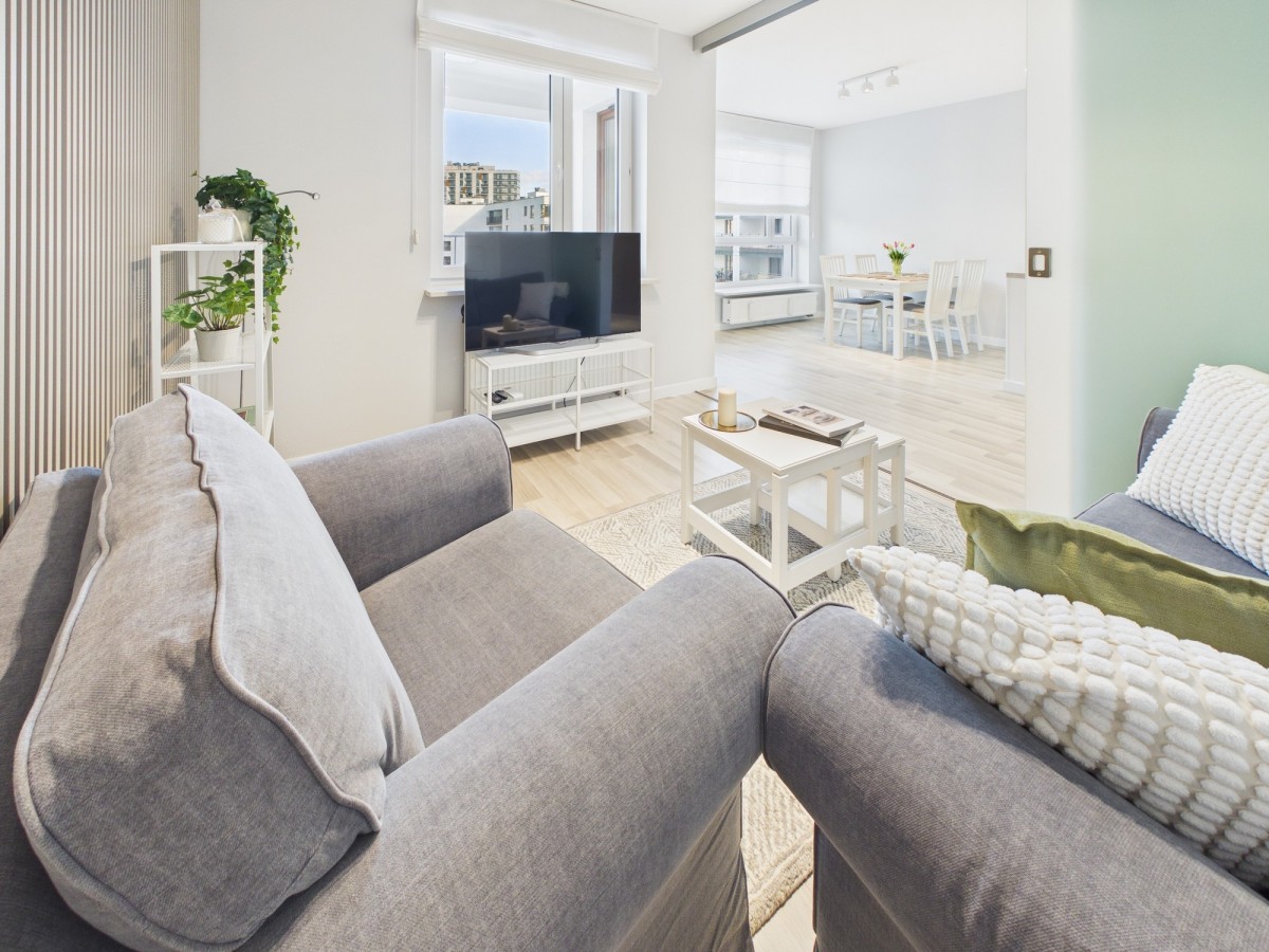 Do wynajęcia jasne, przestronne i w pełni wyposażone mieszkanie o powierzchni 57,5 m² przy ul. J. Nowaka-Jeziorańskiego 51 w dzielnicy Praga-Południe w Warszawa.