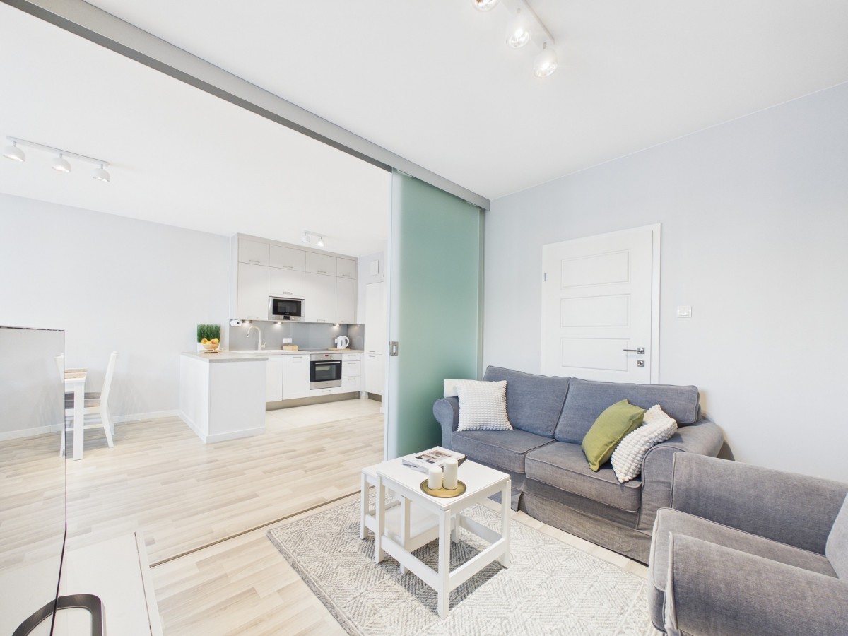 ✔ możliwość oddzielenia salonu przesuwną, szklaną ścianą (idealne do pracy zdalnej)