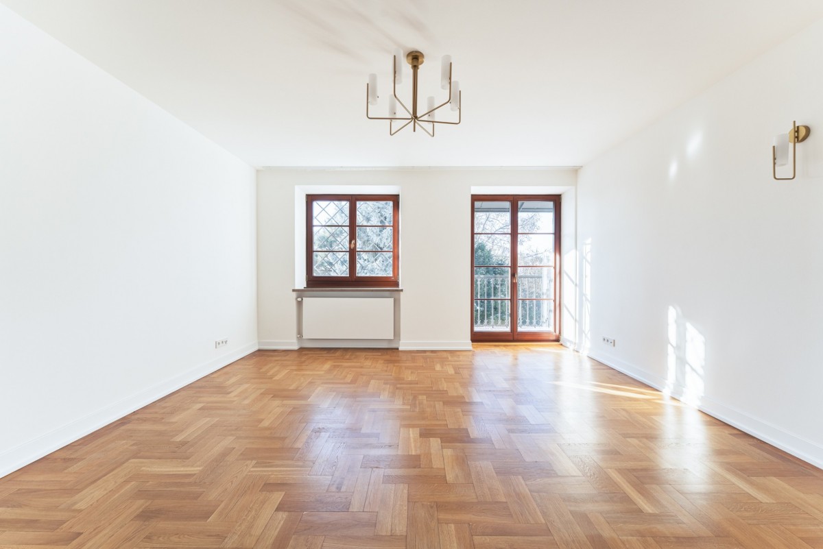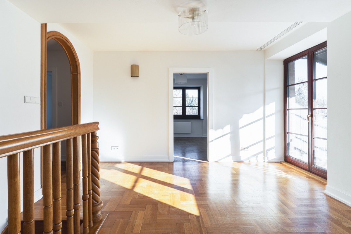 - Wysokiej klasy wykończenie: dębowy parkiet, marmur