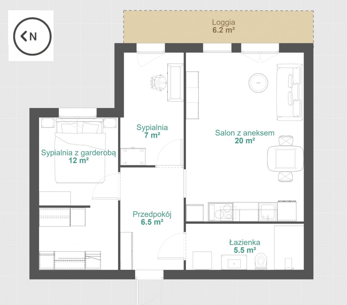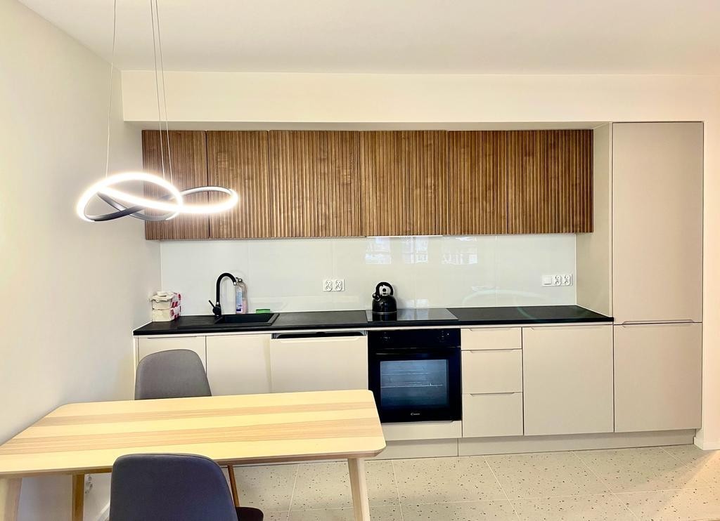 - salonu z aneksem kuchennym (lodówka, piekarnik, zmywarka, okap),