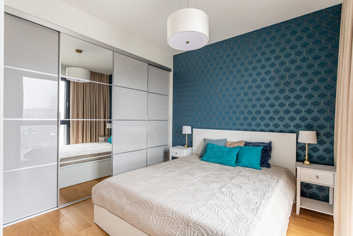 - Sypialnia oferuje dużą szafę w zabudowie oraz dodatkową przestrzeń do przechowywania pod łóżkiem, co zapewnia wysoki komfort codziennego użytkowania.