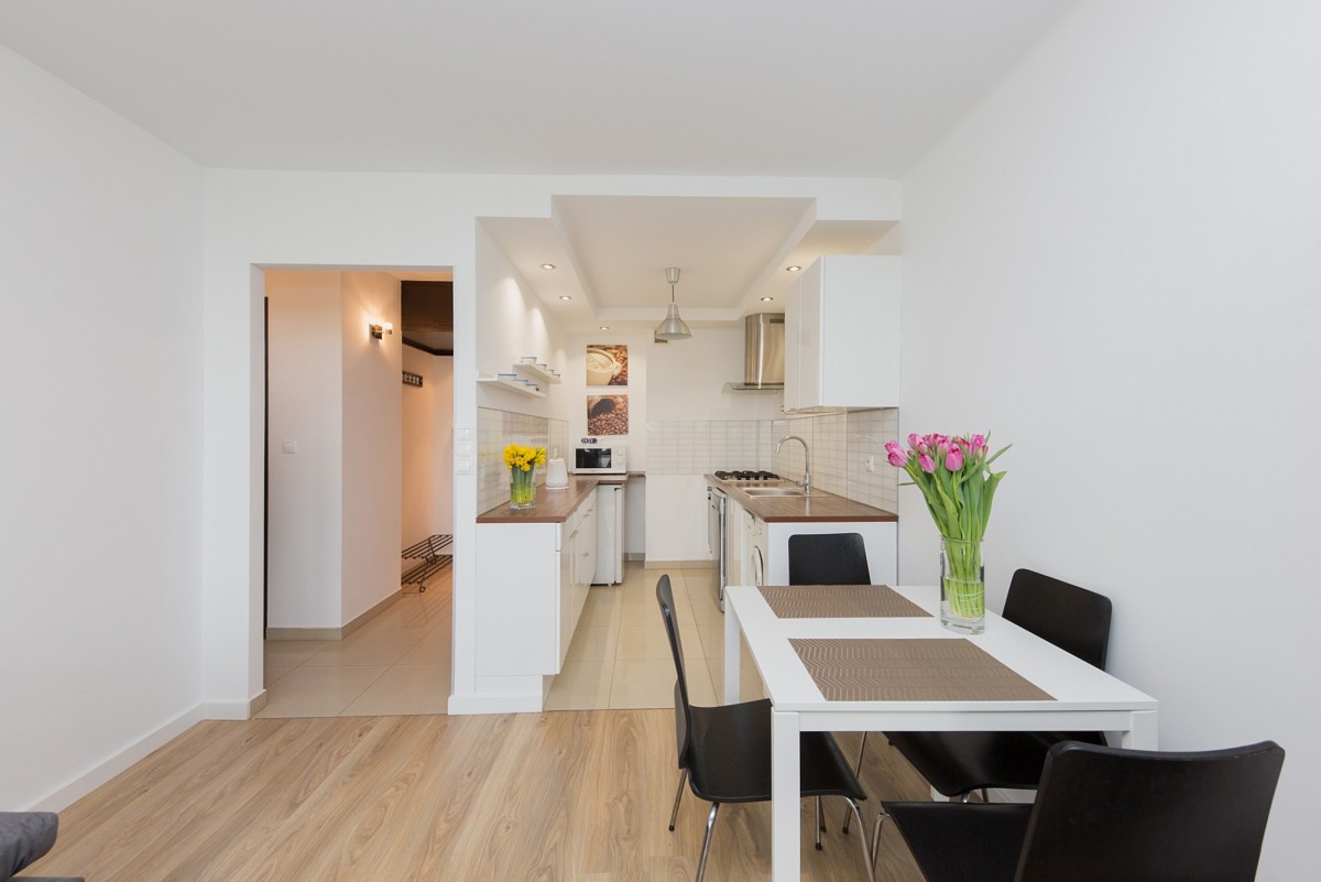 A maximum of 2 people may live in the flat. Monthly rent is 3400zl plus monthly society payments of 700zl. Electricity, water and gas are additional payments that depend upon usage. No pets or smoking allowed.