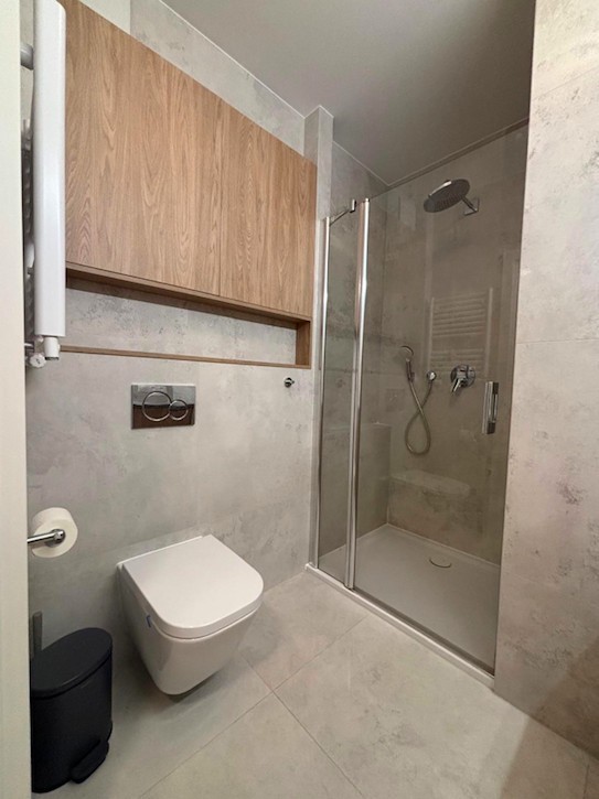 W lokalu znajduje się bardzo dużo szaf i miejsc do przechowywania rzeczy. Z salonu wyjście na przestronny taras, który otoczony jest zielenią i drzewami.