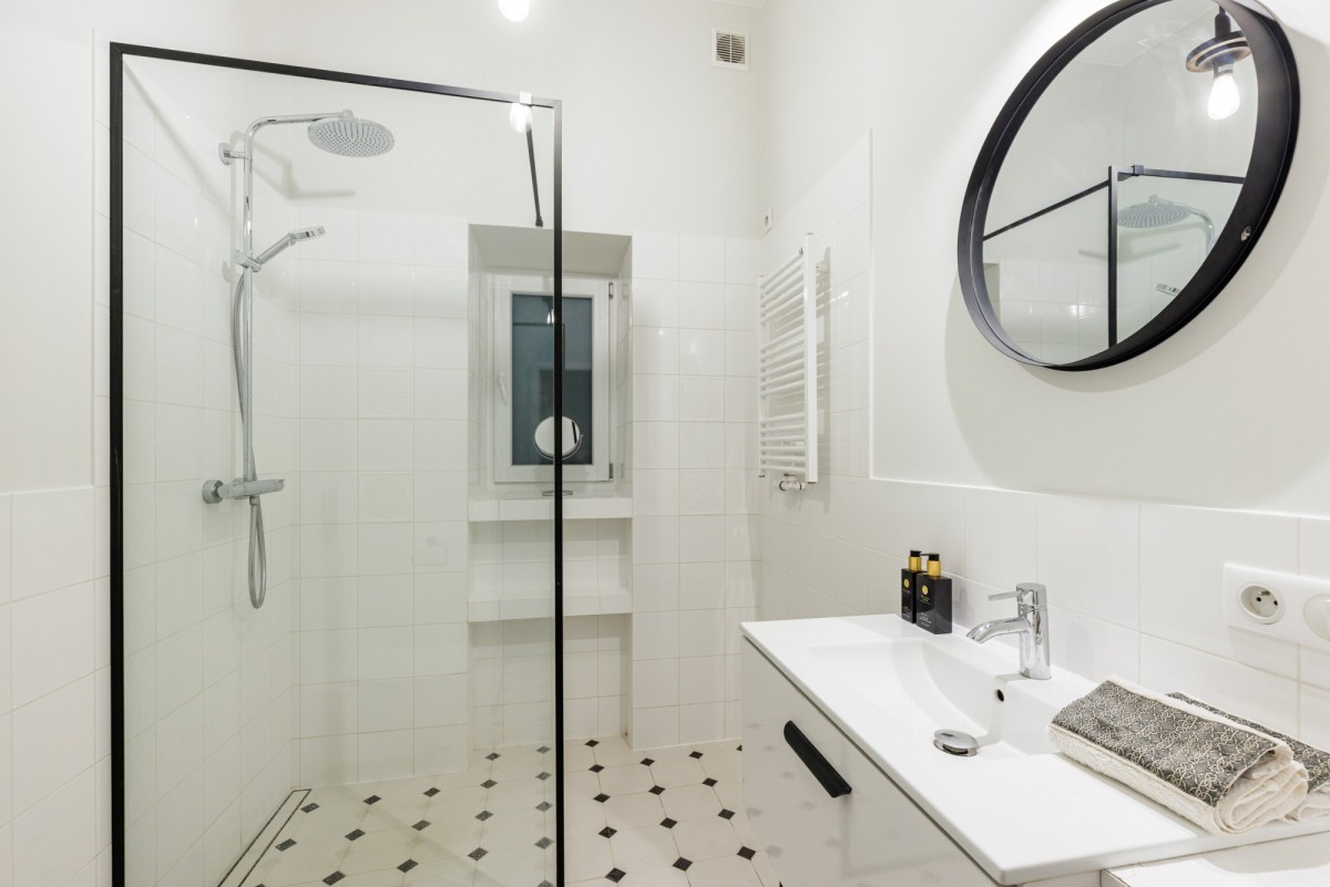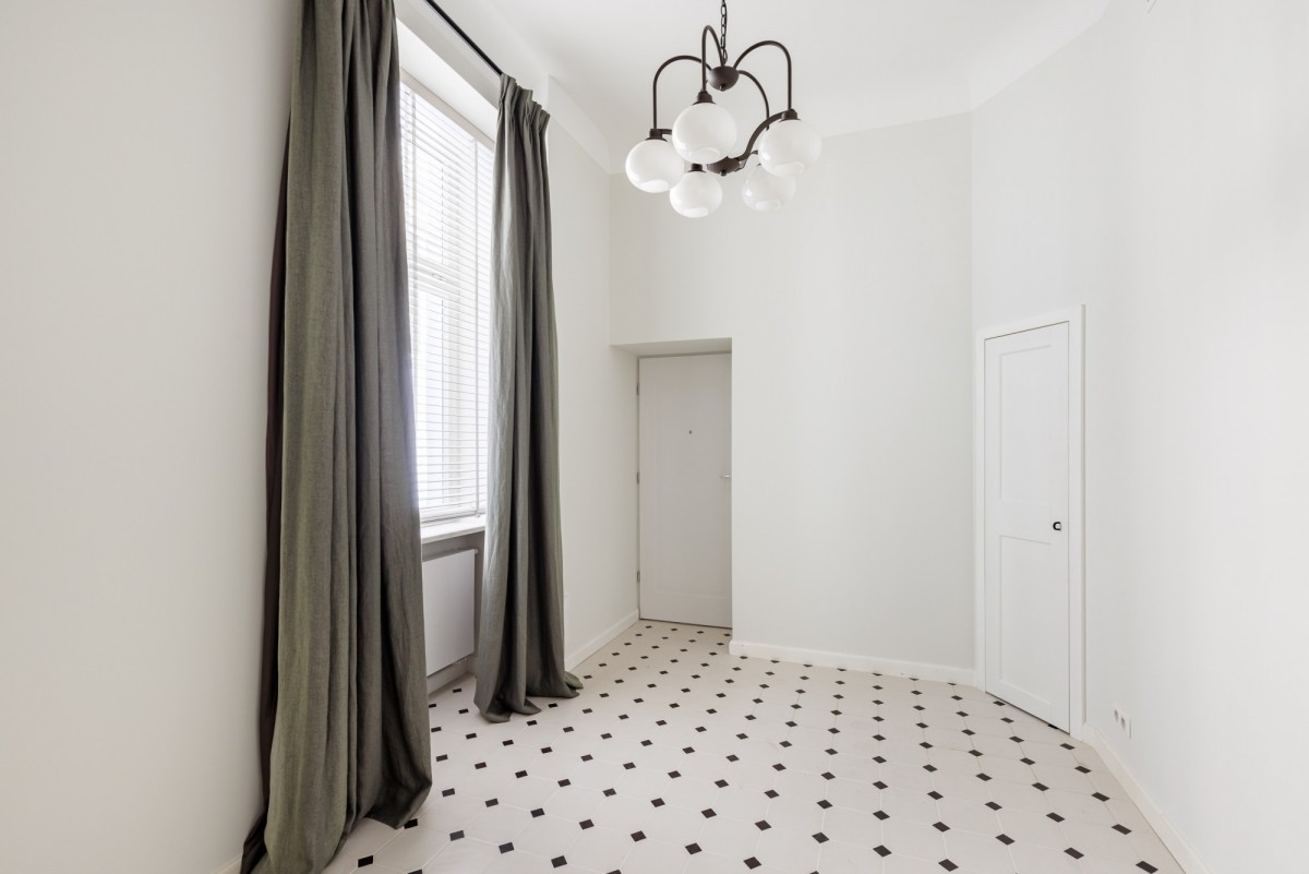 High ceilings, large windows, and the classic architecture of the tenement building give the interiors elegance and a unique atmosphere characteristic of the historic buildings in this part of the city.