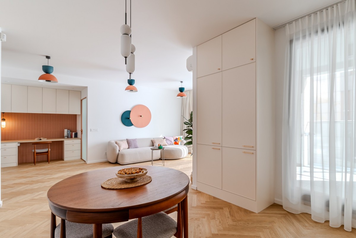 The apartment has undergone a complete transformation in line with the latest design trends. Everything is brand new—from the floors, through the elegant bathroom, to the fully equipped kitchen and modern furnishings.