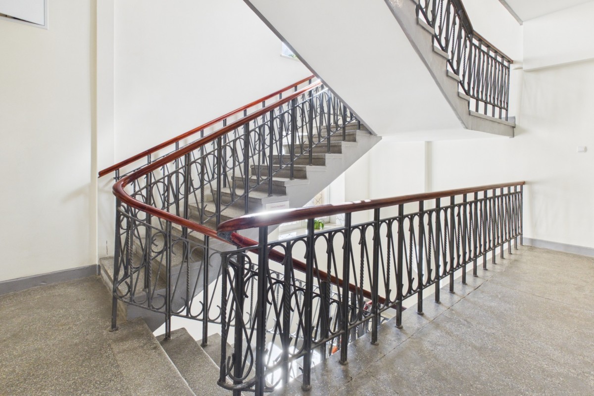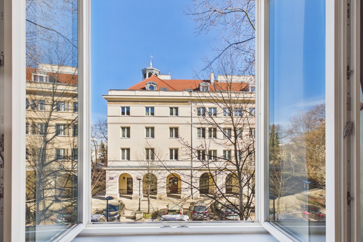Położona w zadbanej kamienicy, z wysokimi sufitami i widokiem na zieleń.