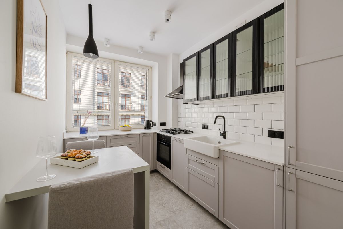 Stylowe mieszkanie o powierzchni 50 m², położone na 4. piętrze w zadbanym budynku z windą. Nieruchomość przeszła generalny remont pod okiem architekta i jest obecnie oferowana jako pierwszy najem. Wnętrza zaprojektowano w duchu nowoczesnej elegancji, łącząc klasyczne elementy (parkiet w jodełkę, sztukaterie) z najwyższym standardem wyposażenia.