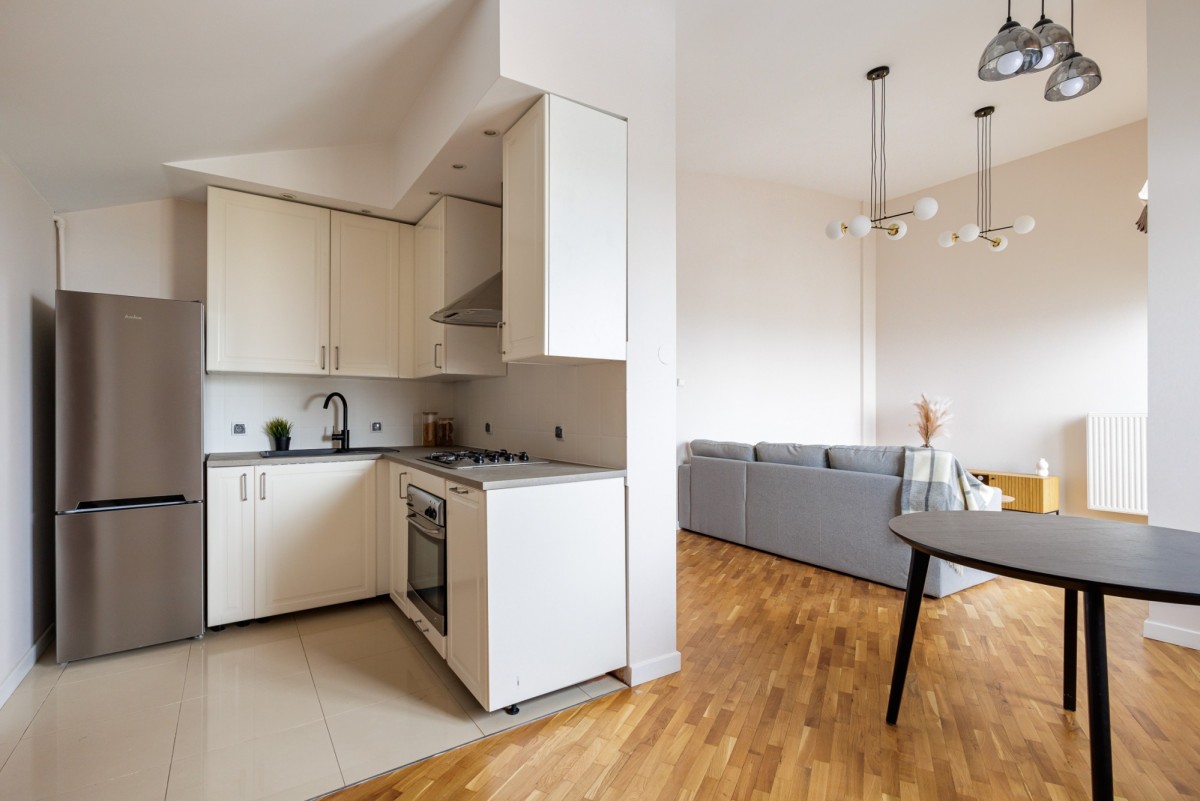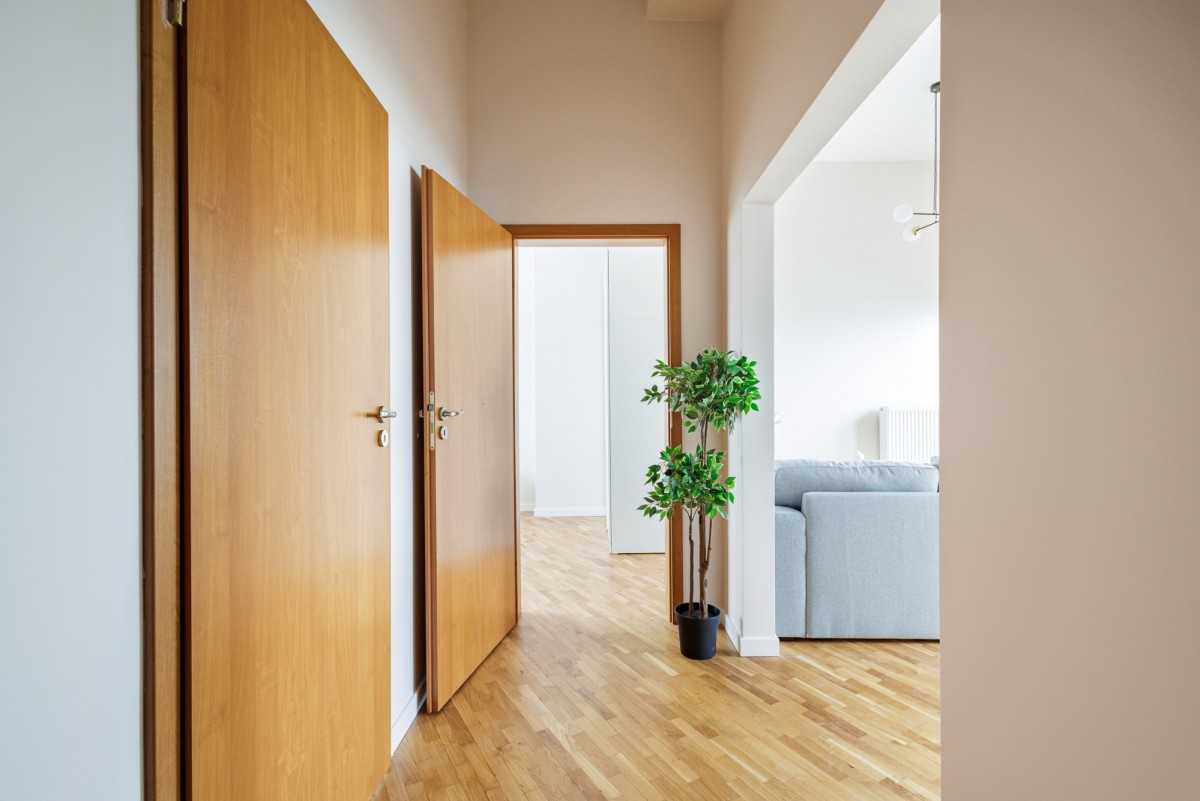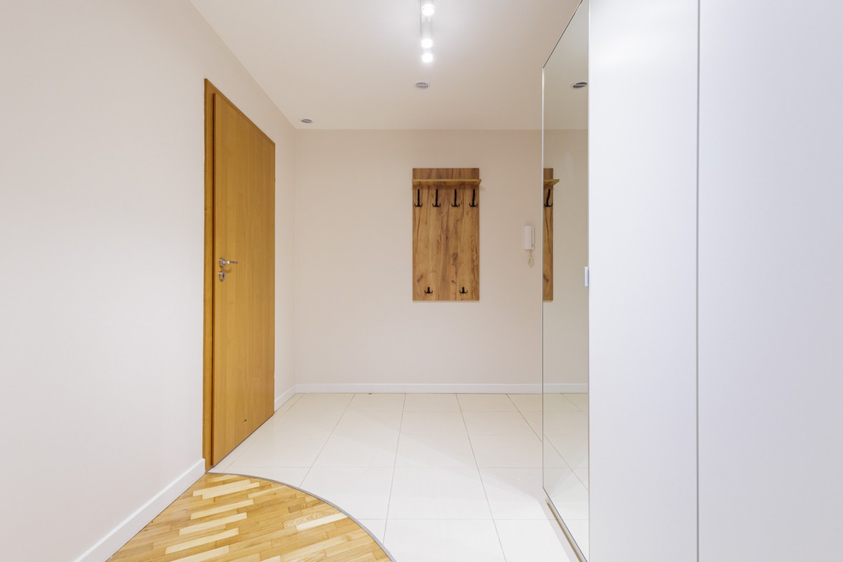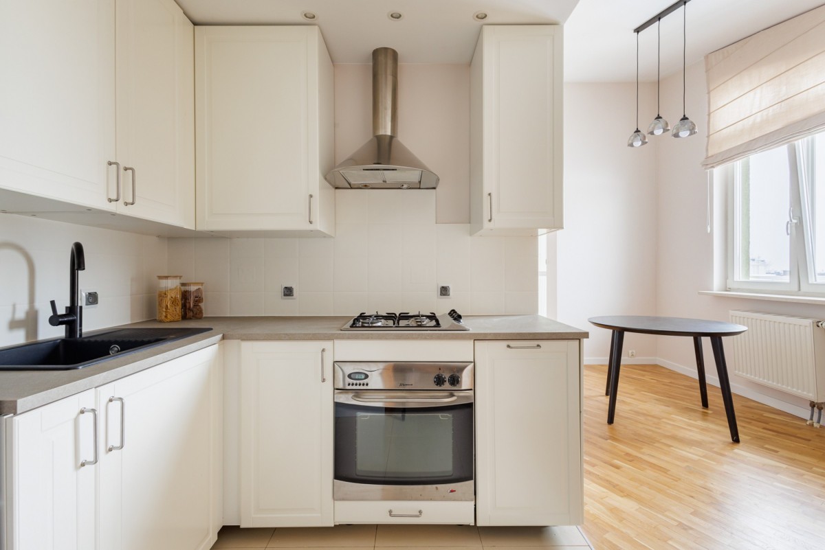 Wnętrza są jasne, funkcjonalnie zaprojektowane i wykończone w neutralnej kolorystyce. Duże okna zapewniają dobre doświetlenie pomieszczeń, a układ mieszkania daje poczucie przestrzeni i komfortu. Apartament idealnie sprawdzi się dla pary ze starszym dzieckiem (widna dojeżdża do przedostatniego pietra) lub pary ceniącej wygodę i przestrzeń. Mieszkanie nie posiada parkingu.