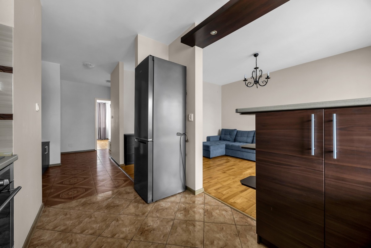 Kuchnia wyposażona w kompletny sprzęt AGD (lodówka, płyta, piekarnik, zmywarka, okap), Lokal gotowy do zamieszkania od zaraz.