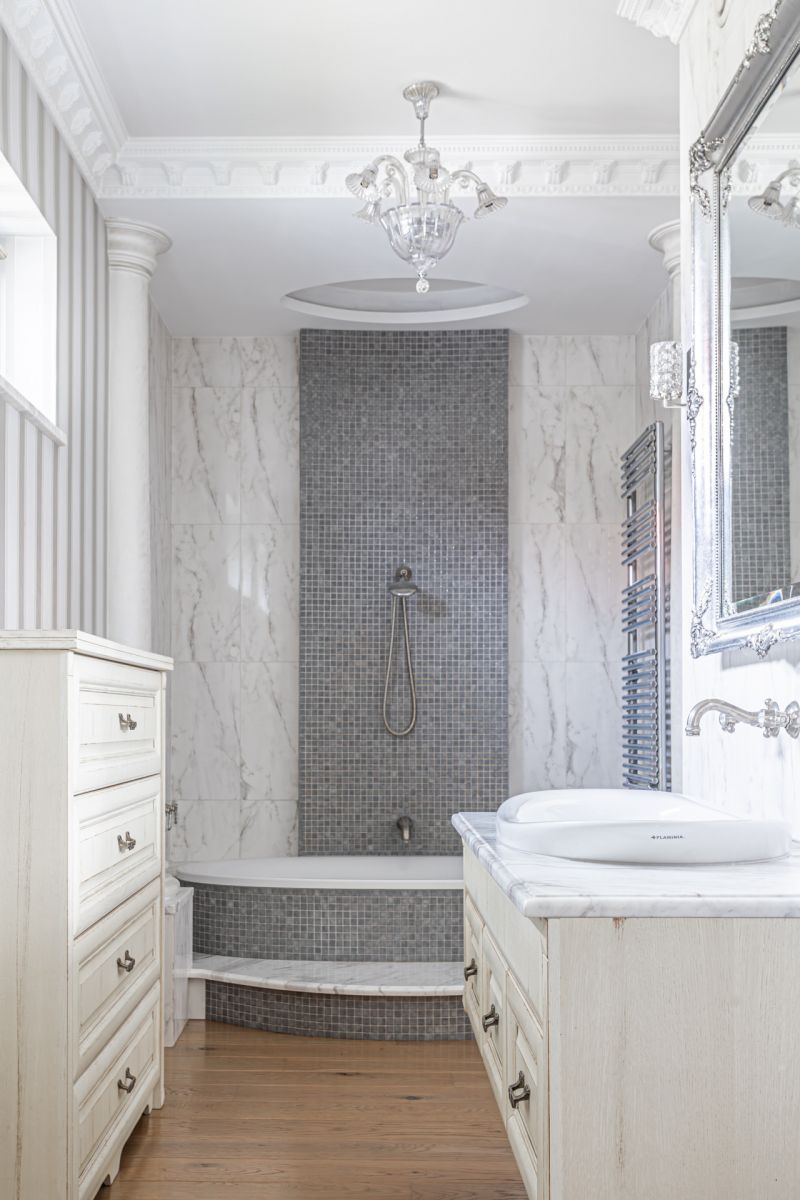* Sypialnia z łazienką wyposażoną w wannę i kabinę prysznicową,