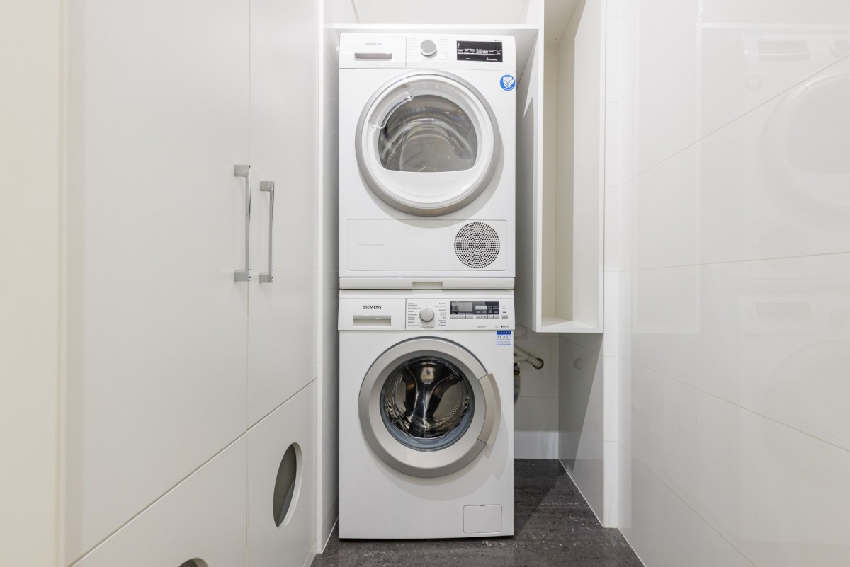 - Osobnej pralni, co znacząco podnosi wygodę i jest rzadko spotykane w mieszkaniach w tej okolicy.