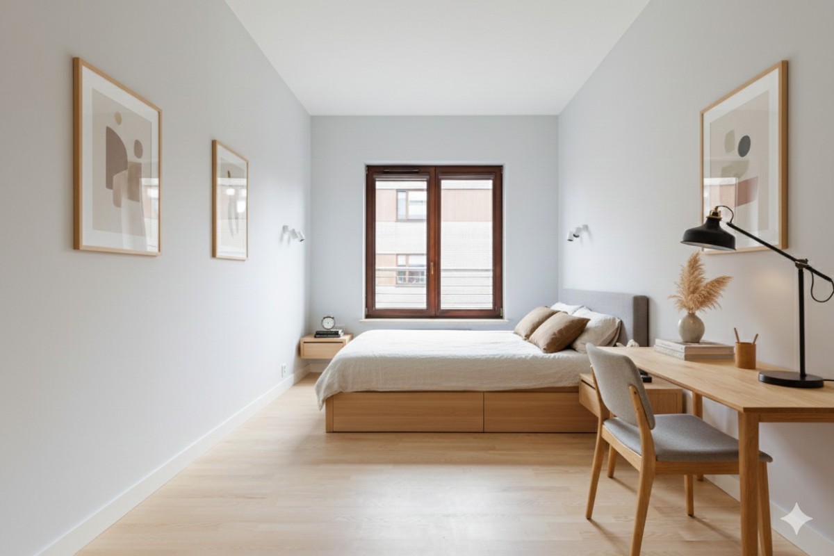 - Drugiej sypialni, idealnej jako pokój dziecka, gabinet lub pokój gościnny.