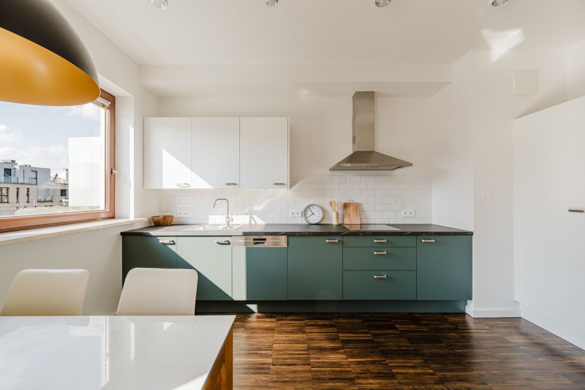 * przestronny salon z aneksem kuchennym,