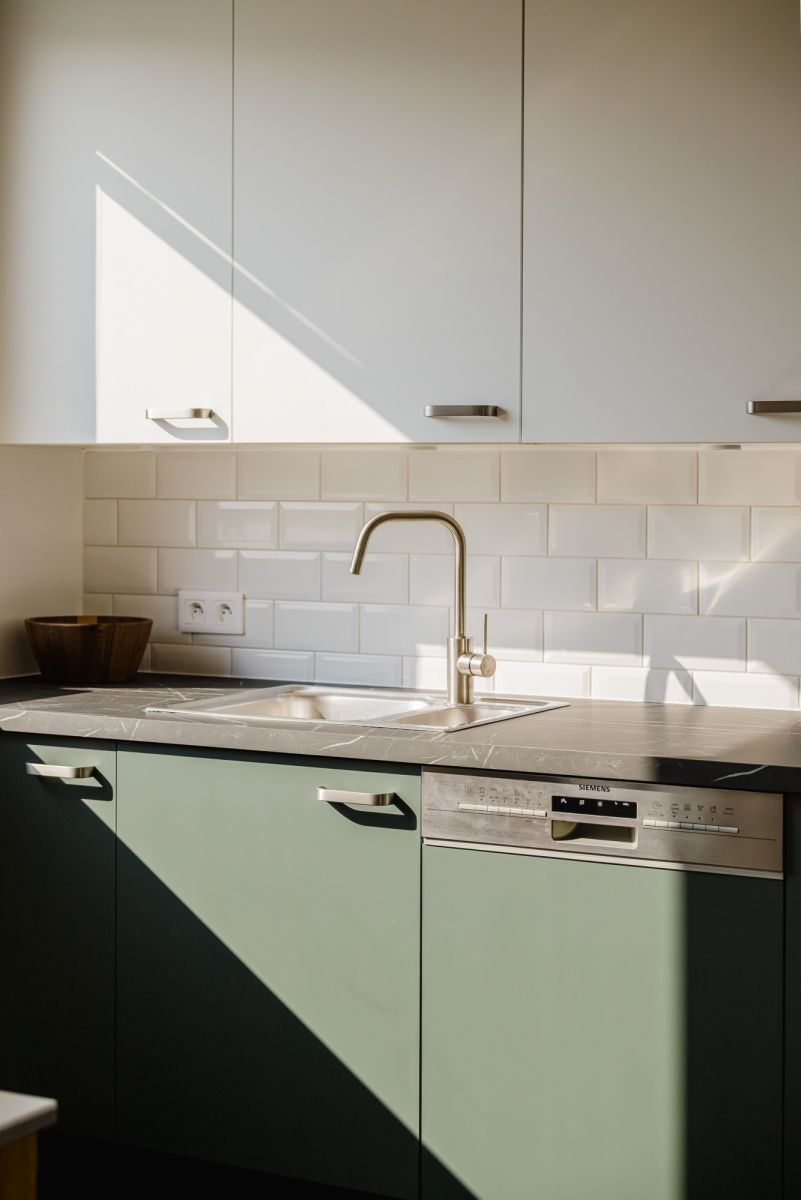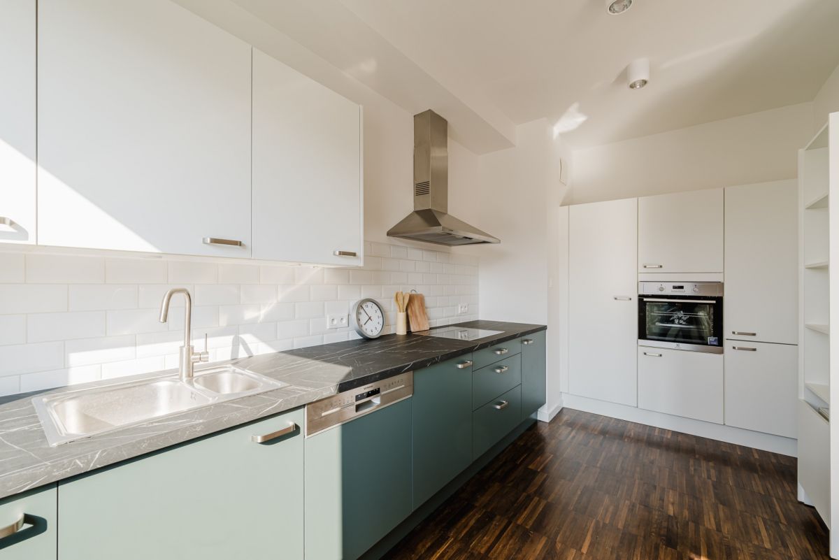 Two parking spaces (platform) are included in the price. The west-facing windows in the living room and kitchen ensure excellent natural light throughout the day.
