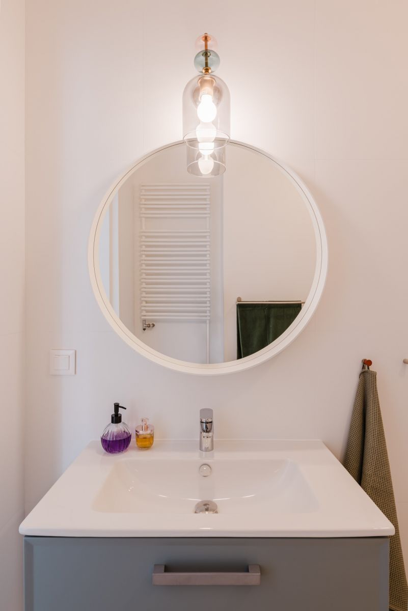 * Bathroom with a bathtub,