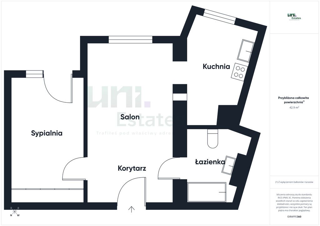 - Powierzchnia: 42.9 m2