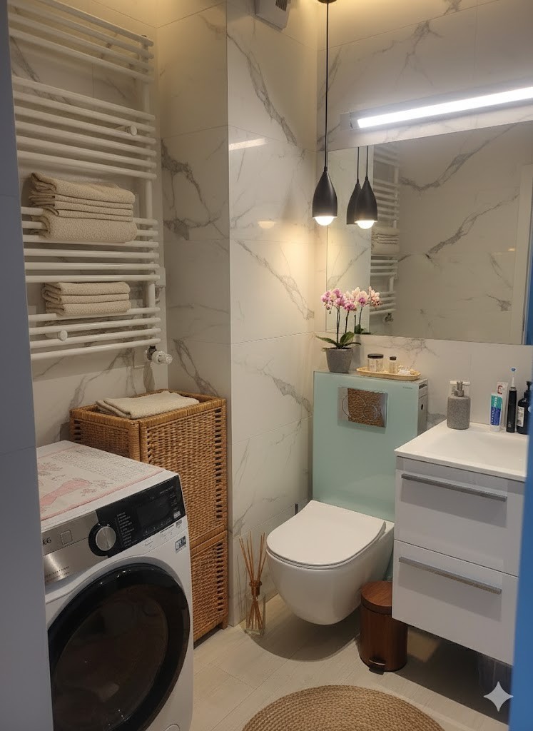 Łazienka: Nowocześnie wykończona i komfortowa.