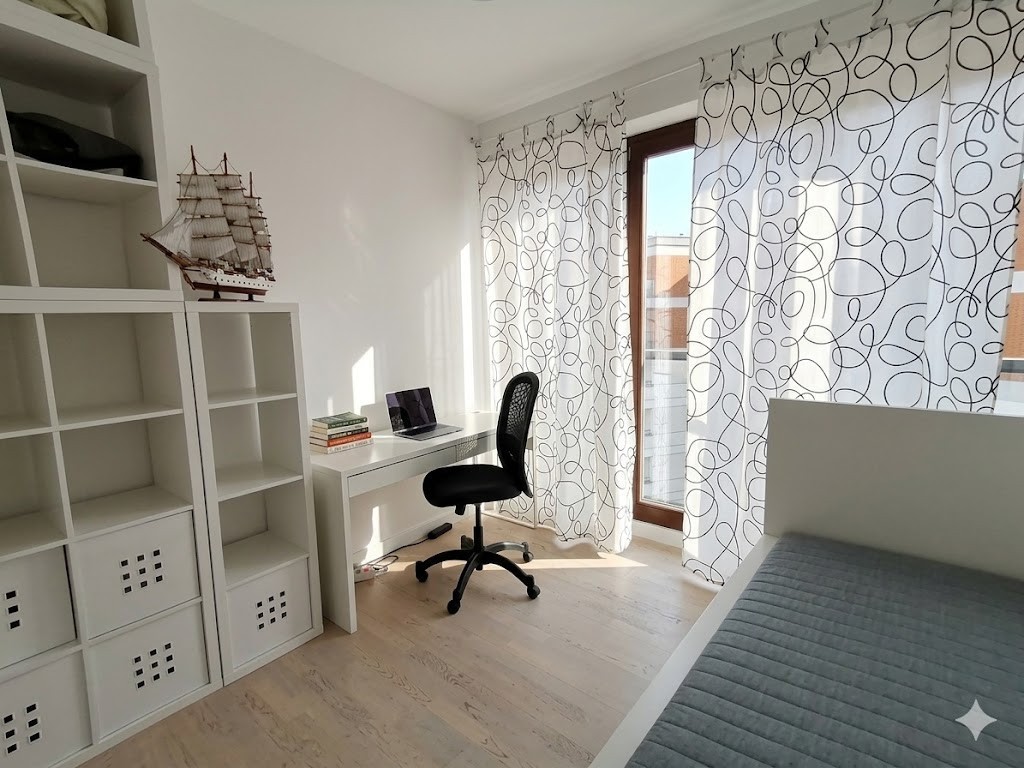 Dwie sypialnie: Ustawne pokoje, które mogą służyć jako sypialnia główna oraz pokój dla dziecka lub gabinet do pracy.