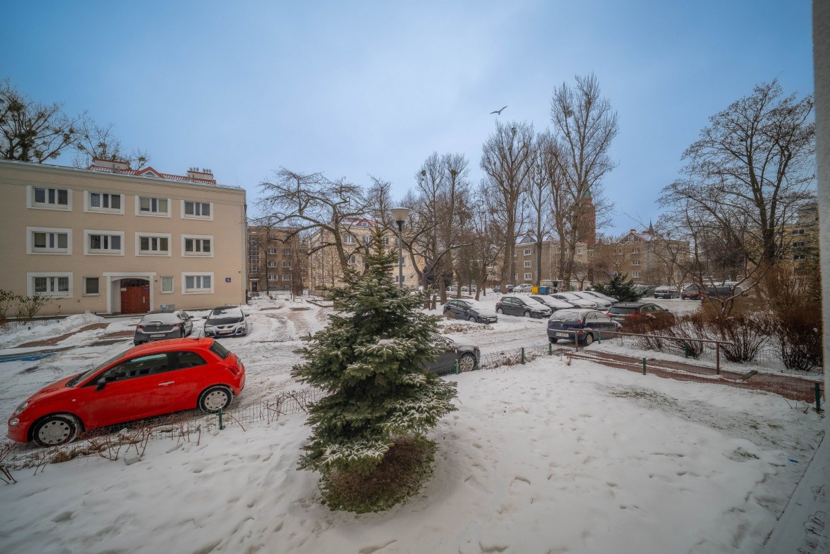 Ekspozycja okien na zachód. Okna wychodzą na ciche podwórze. Otoczenie budynku to niska zabudowa oraz dużo starannie utrzymanej zieleni.