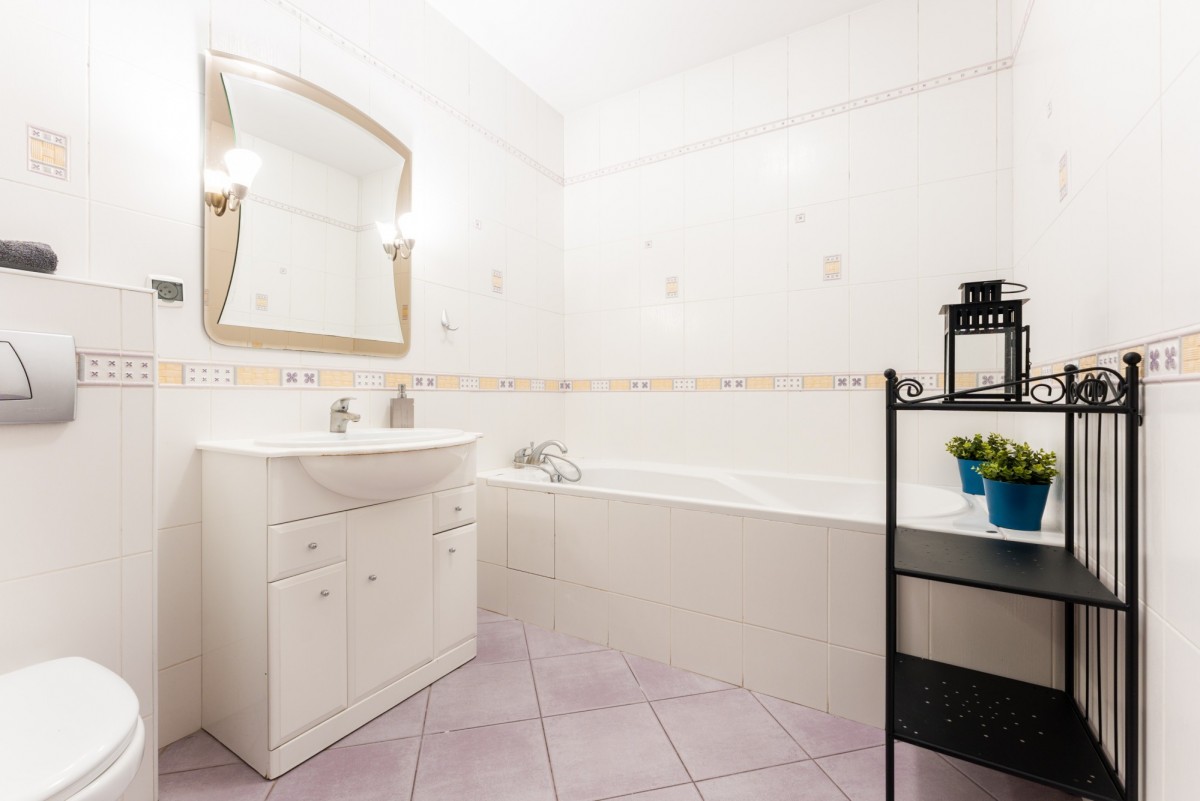 * do dyspozycji są dwie łazienki — jedna większa, komfortowa, wyposażona w prysznic, oraz druga mniejsza z wanną.