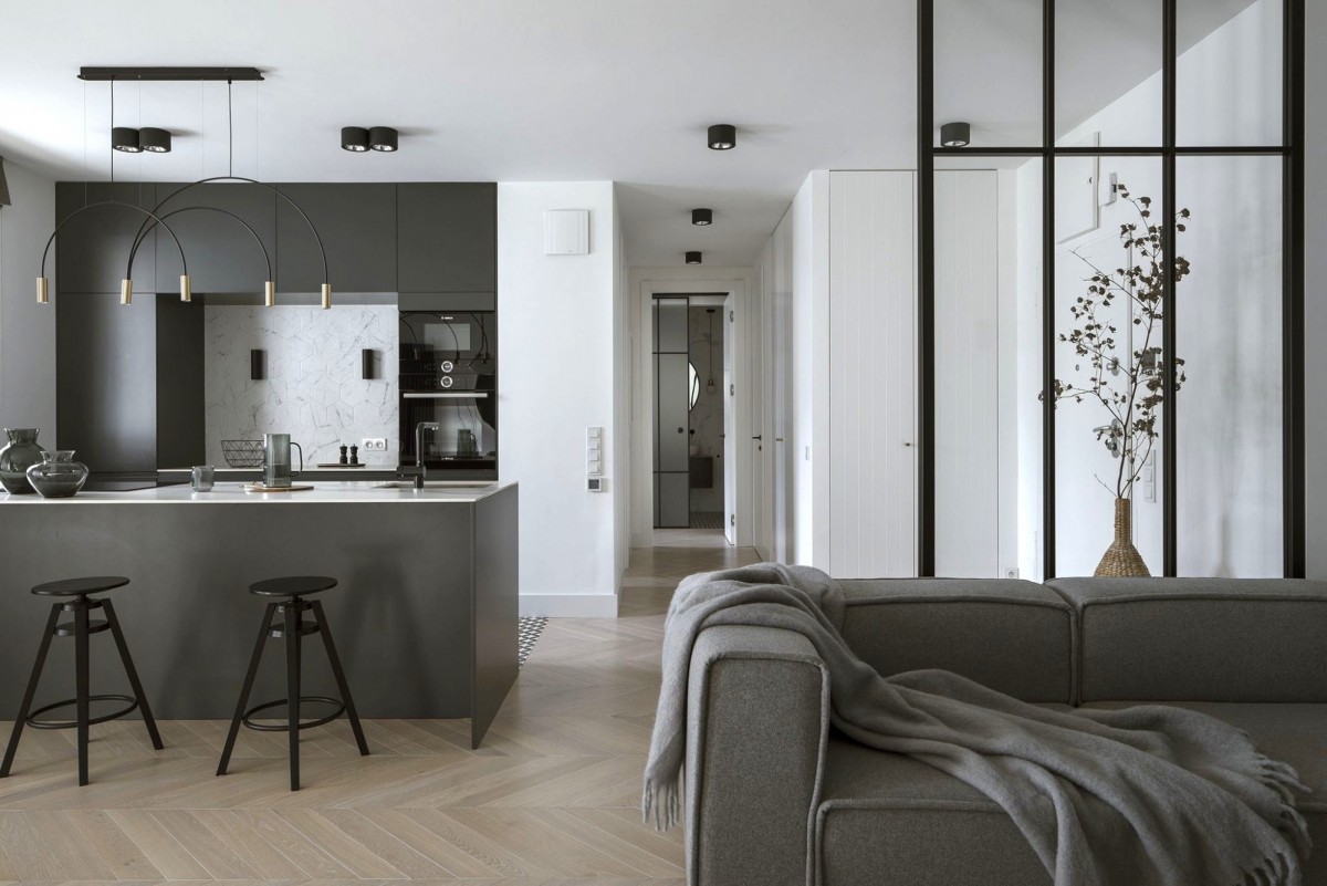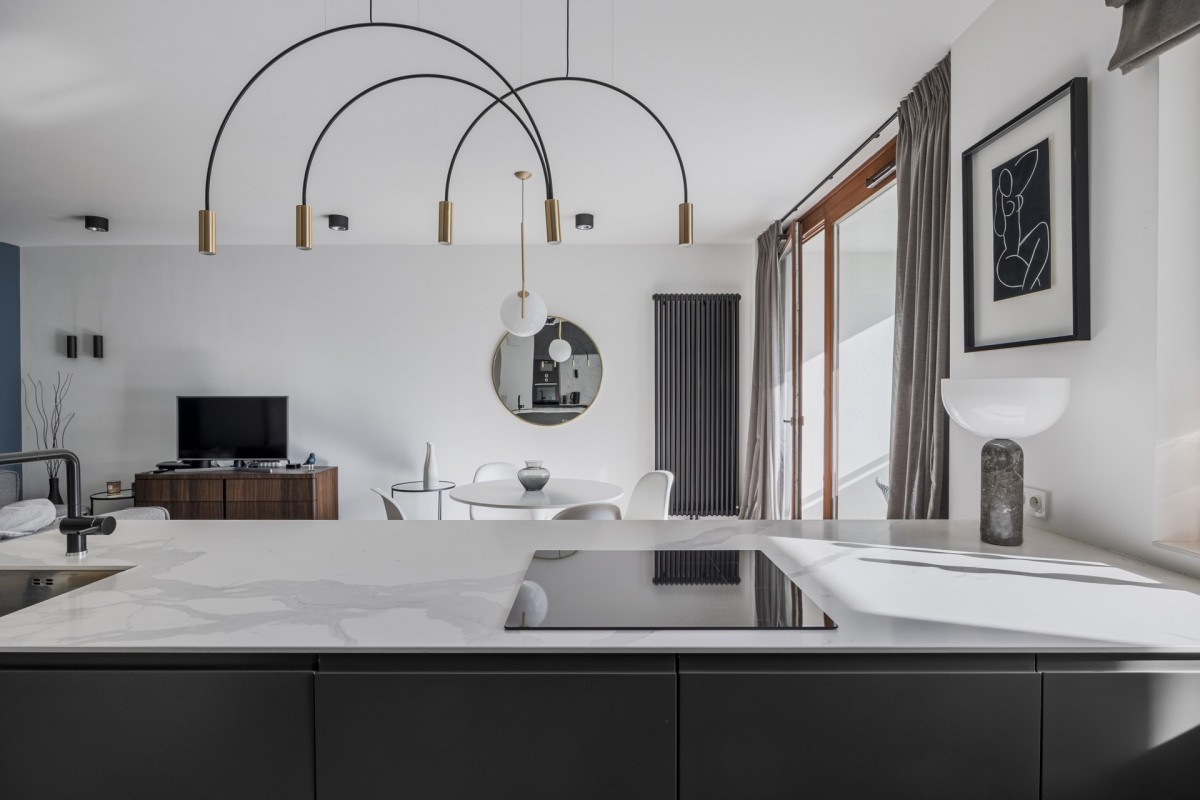Mieszkanie po niedawnym remoncie, wykończone jakościowymi materiałami i wyposażone meblami światowych marek - m.in łóżko i komoda Poliform, szafki B&B Italia, oryginalne krzesła jadalne Panton marki Vitra.