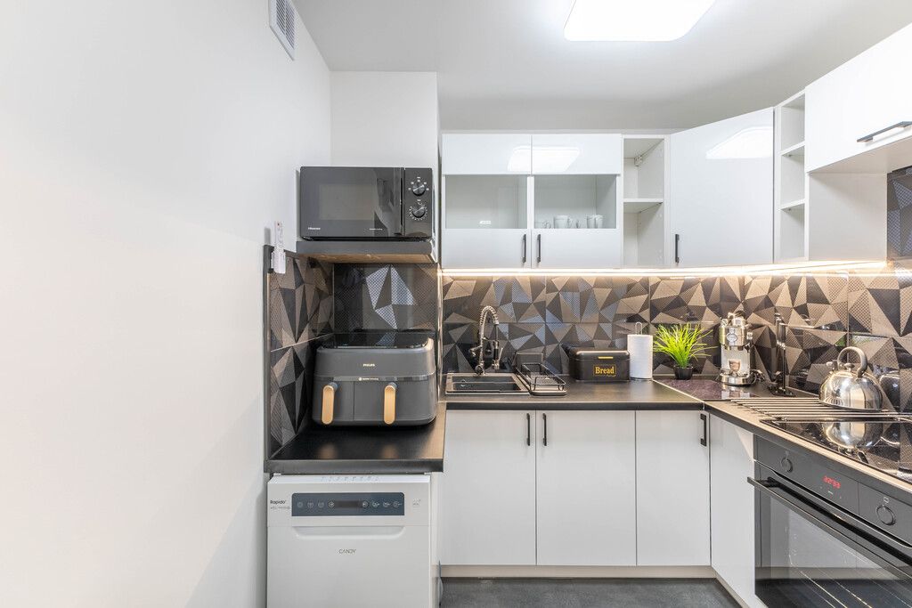 - Separate kitchen with full equipment: microwave, oven, hob, dishwasher, fridge, kettle, as well as a set of dishes and cutlery,
